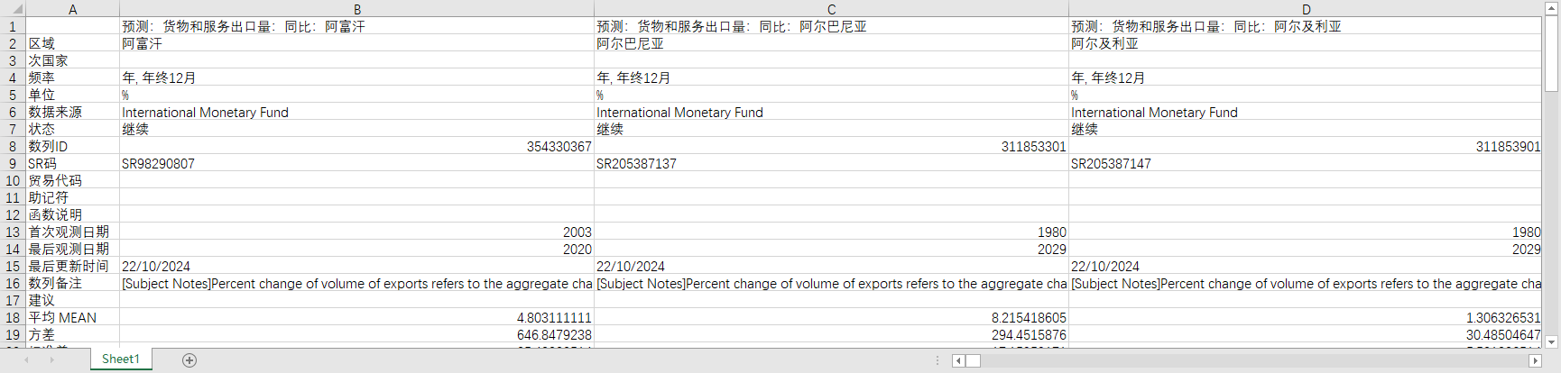 IMF预测数据全球世界各国地区1980-2029世界经济展望货物和服务进口量出口量同比国际对外贸易