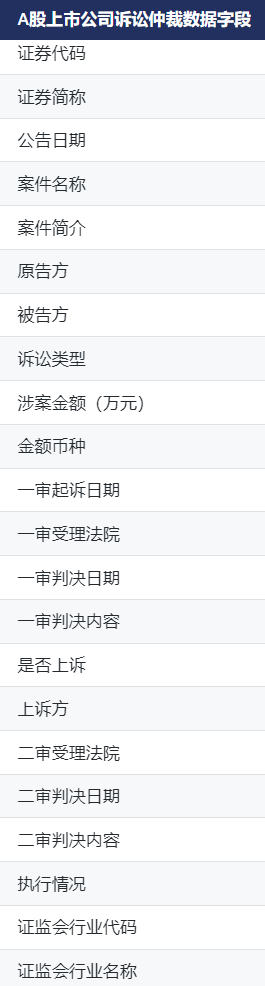 CnOpenDataA股上市公司诉讼仲裁数据.zip