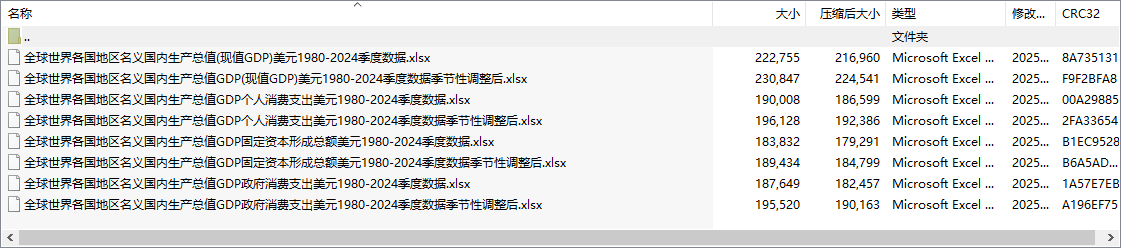 全球世界各国地区名义国内生产总值GDP固定资本形成总额政府个人消费支出1980-2024季度.zip