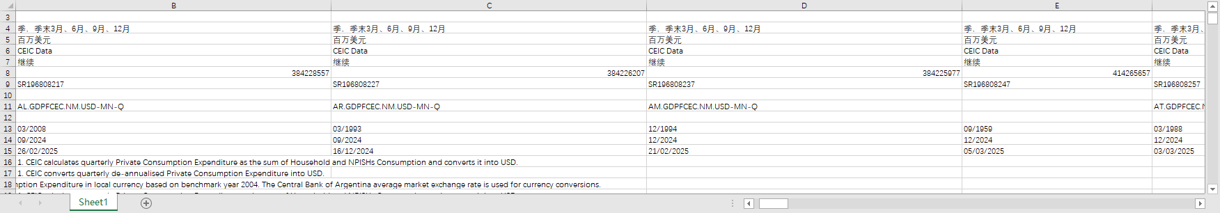 全球世界各国地区名义国内生产总值GDP固定资本形成总额政府个人消费支出1980-2024季度数据季节性调整后