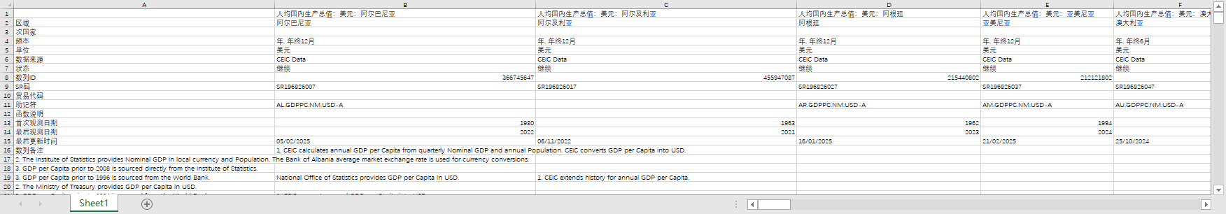全球世界各国地区人均国内生产总值GDP美元1980-2024年度数据
