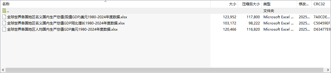 全球世界各国地区名义国内生产总值(现值GDP)美元1980-2024年度数据