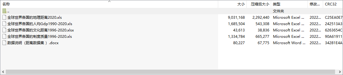 全球世界各国的地理距离文化距离制度质量人均gdp1960-2020.zip