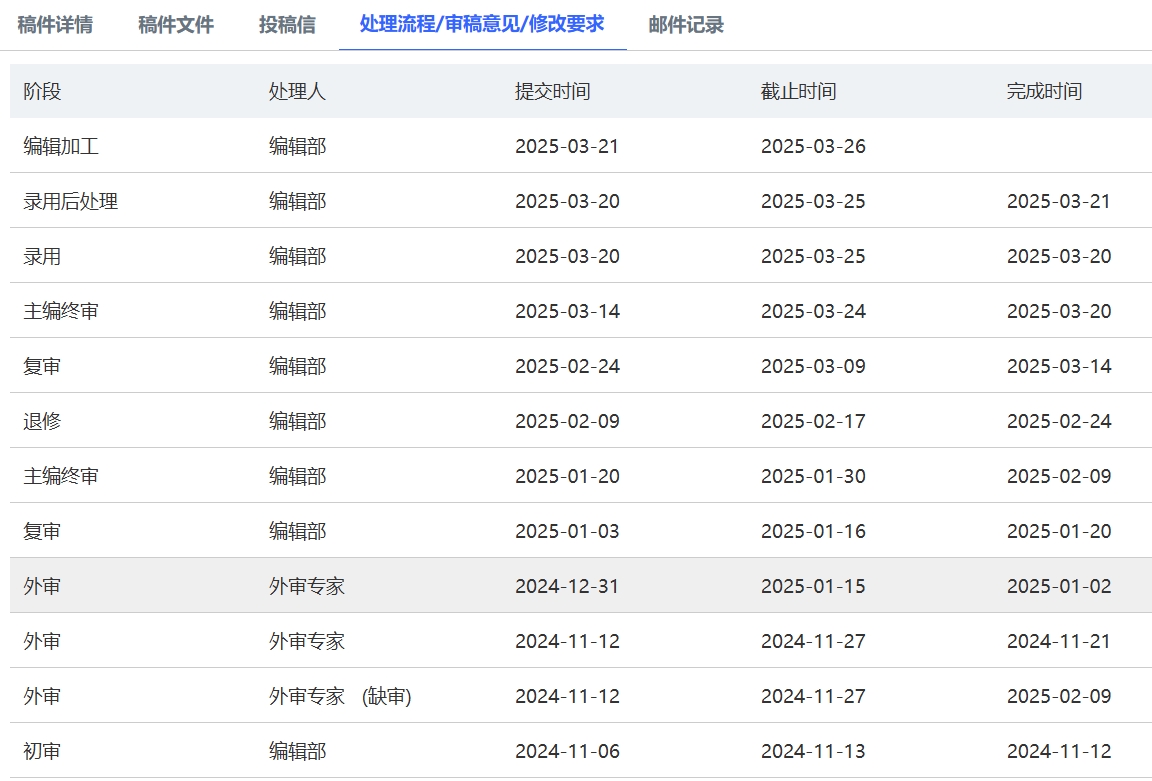 Aprillypl 发表于 2025-3-24 23:18 另外,请问方便看下你的稿件处理流程吗?我想和我的各阶段时间对对看是否大概是同一期