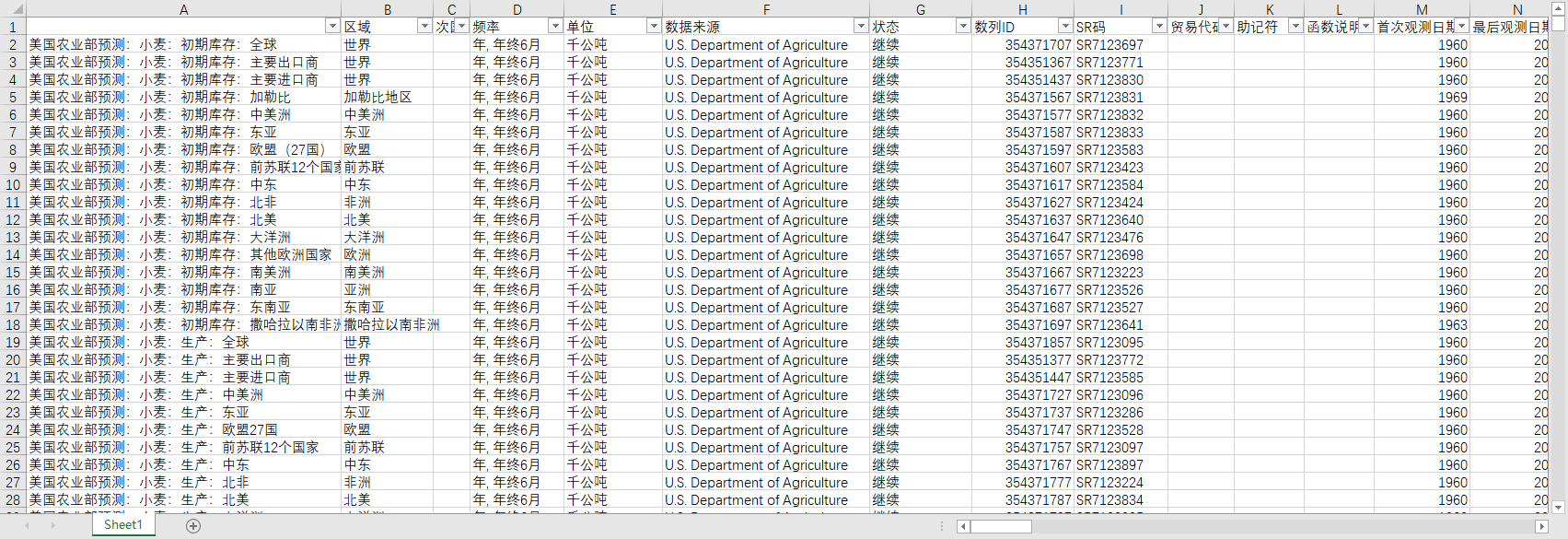 USDA预测全球世界各国地区谷物油菜籽纤维供应使用面积产量1960-2024小麦大麦玉米小米大豆棉花等