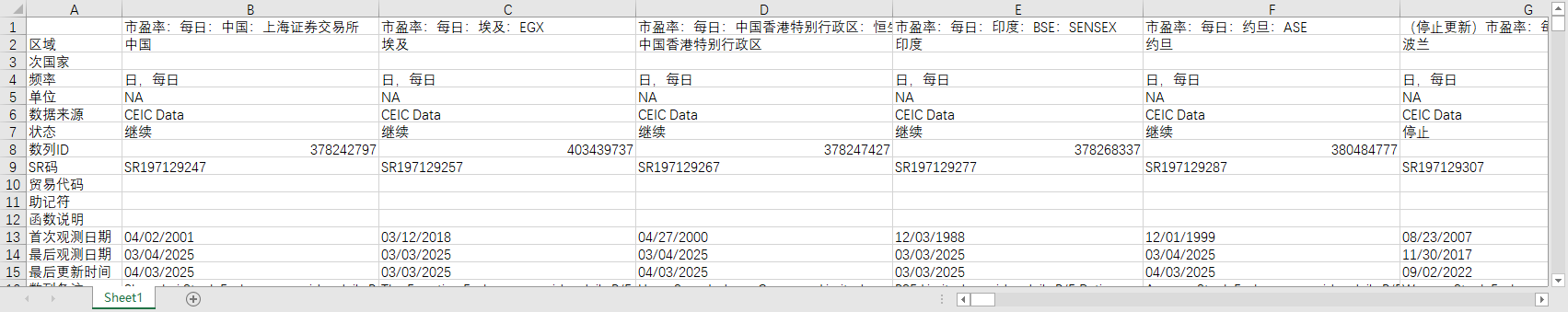 全球世界各国地区金融市场证券股票市场市盈率每日度数据1988-202502