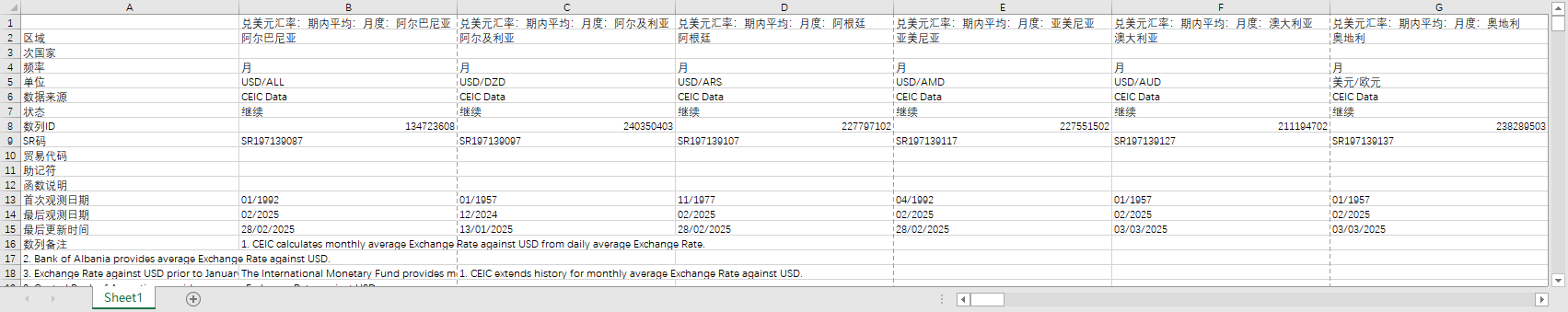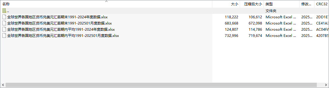 全球世界各国地区货币兑美元汇率期内平均1991-202501月度数据