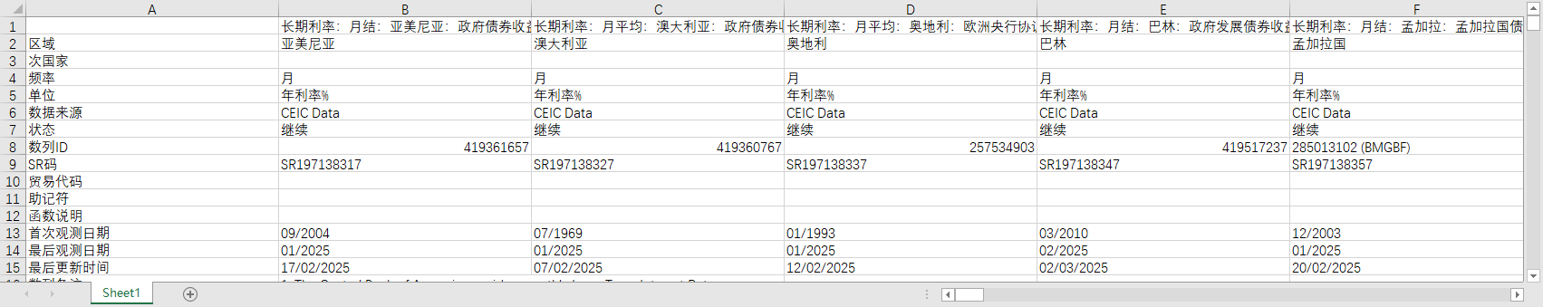 全球世界各国地区长期利率政府债券长期国债收益率1991-202501月度数据