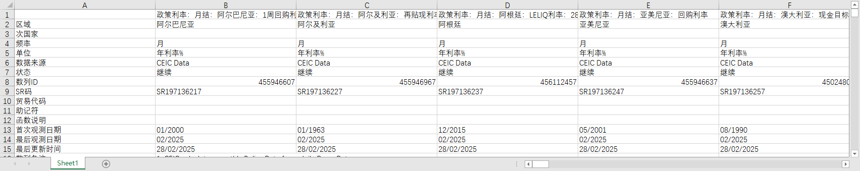 全球世界各国地区政策利率贴现率基准利率1991-202501月度数据