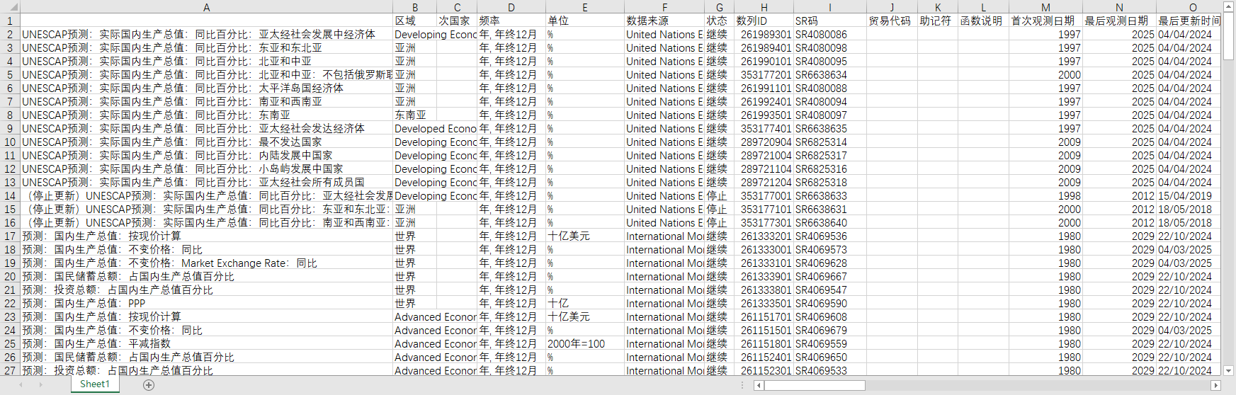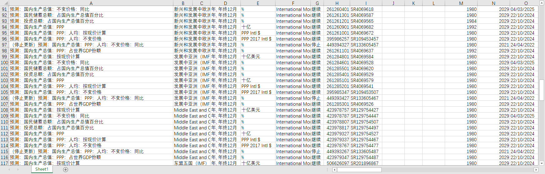 IMF世界经济展望全球国内生产总值GDP预测数据1980-2029新兴和发展中发达经济体欧元区G7欧盟CIS等地区