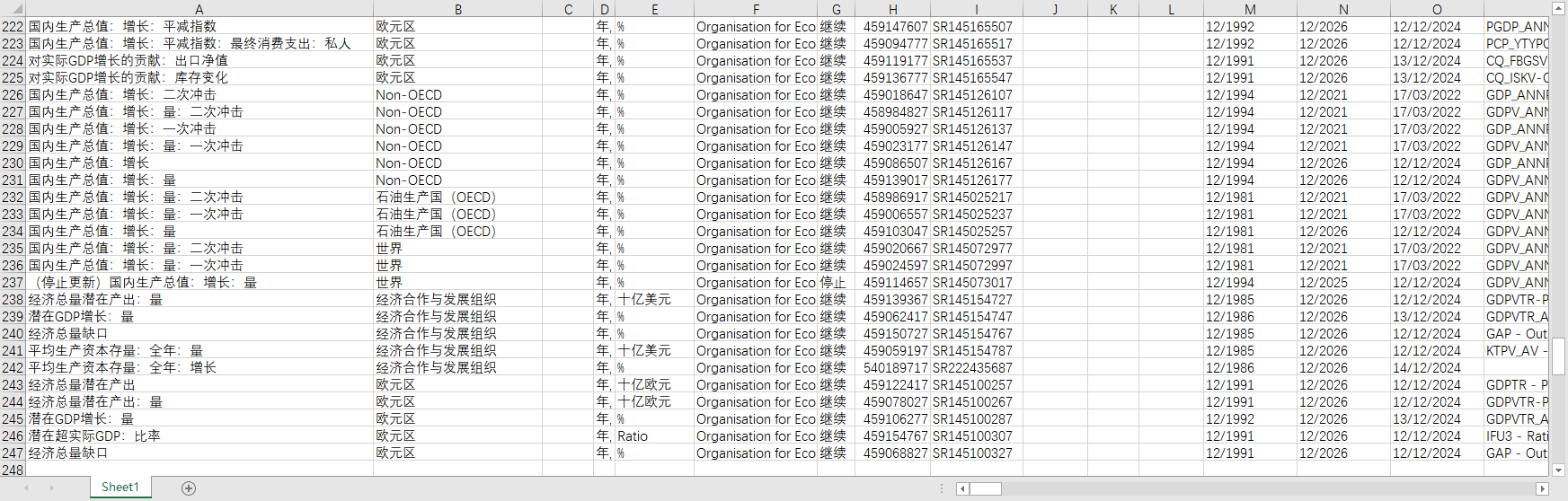 表 EA.OECD.EO:国内生产总值:潜在产量及产量差距:预测:年度:欧元区(17国)