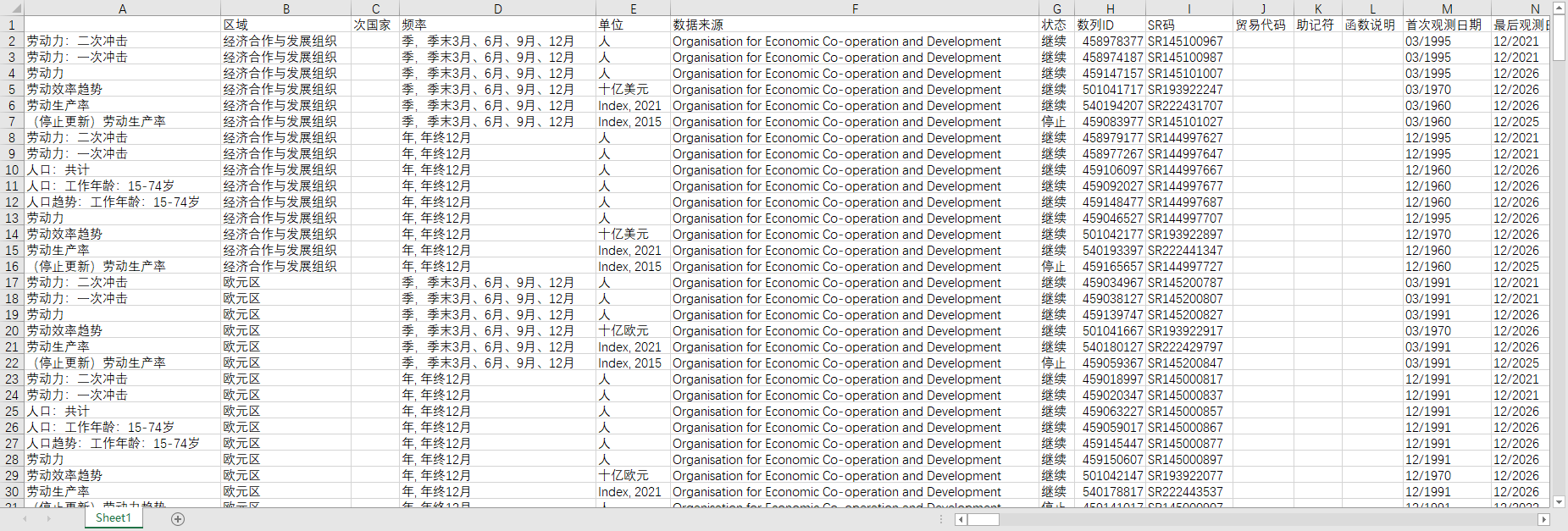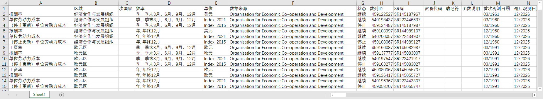 全球工时、单位劳动成本和劳动报酬预测数据1991-2026季度年度经合组织欧元区等地区