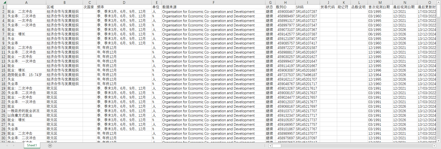 全球就业和失业预测数据1991-2026季度年度经合组织欧元区等地区