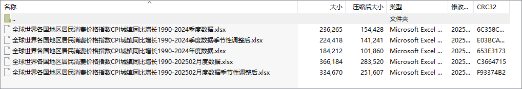 全球世界各国地区居民消费价格指数CPI城镇同比增长1990-202502月度数据