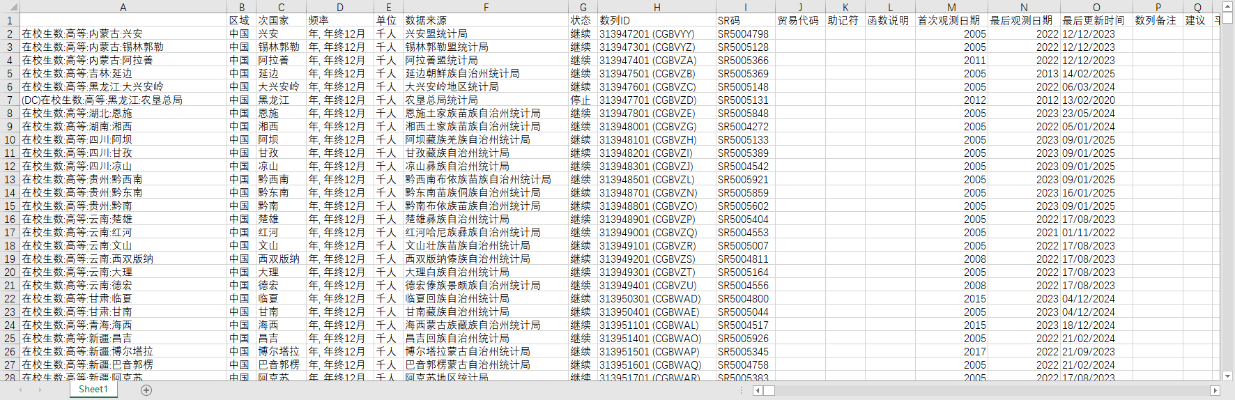 Table CN.GR : 在校生数 : 高等 : 地级区域