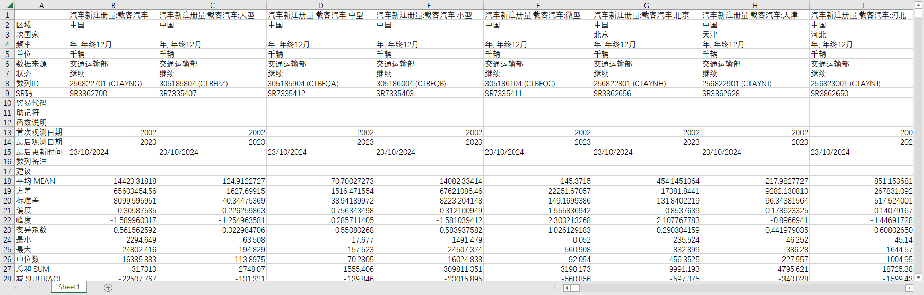 全国31个省份2002-2023汽车新注册量载货汽车载客汽车