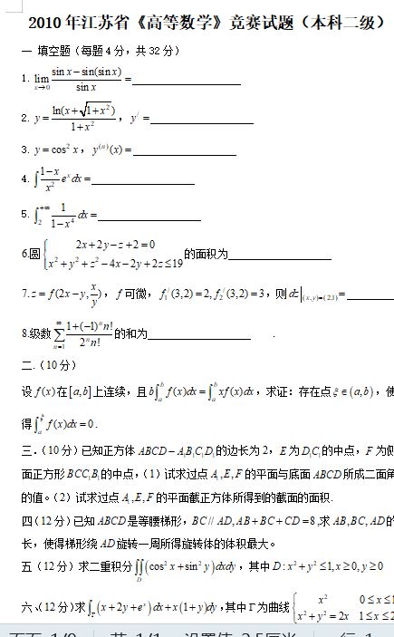 江苏省历年高等数学竞赛试题