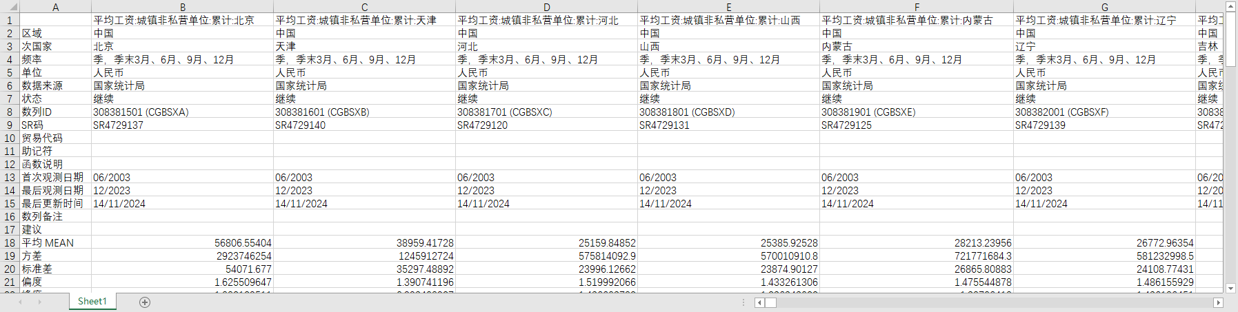 中国全国就业人员平均工资分31个省份地区2003-2023季度数据