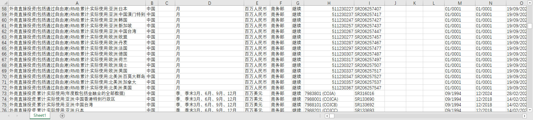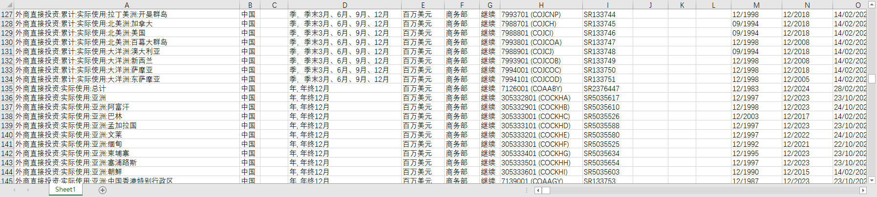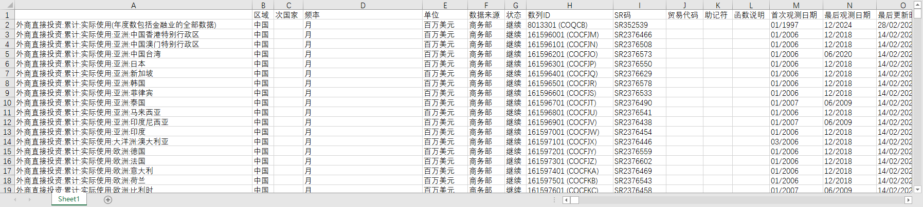 全球世界各国地区外商直接投资FDI中国分国别实际使用利用外资金额1987-2023年度数据