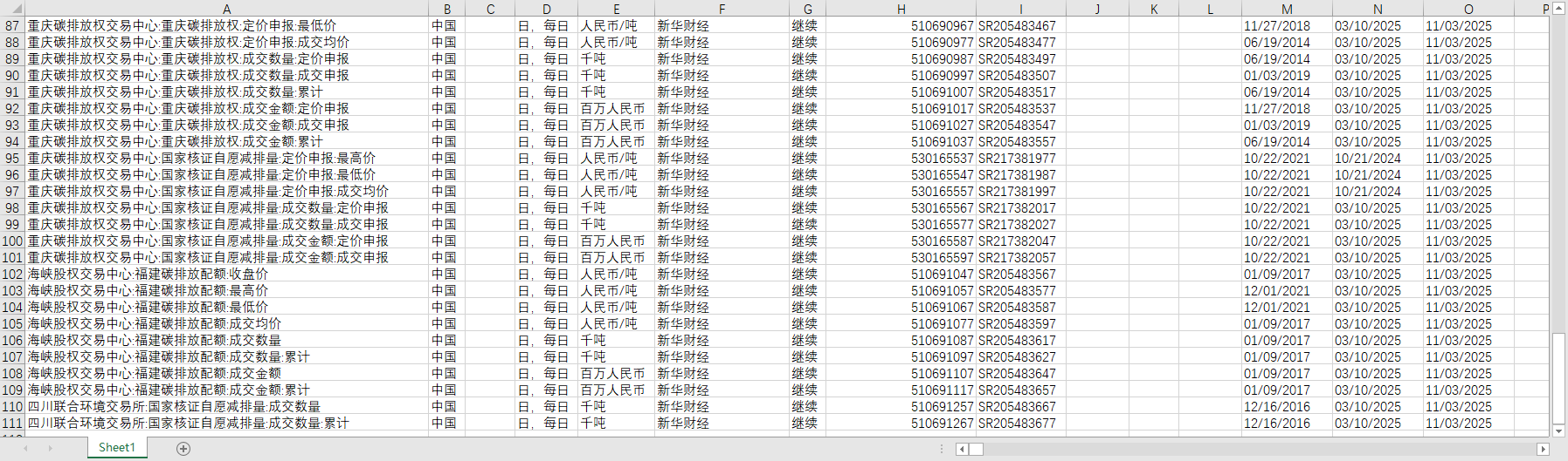 Table CN.EPT : 新华 : 深圳排放权交易所 : SZEA&CCER