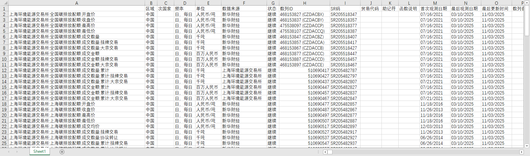 上海北京广州天津深圳重庆福建四川碳排放交易市场日度数据2013-20250310