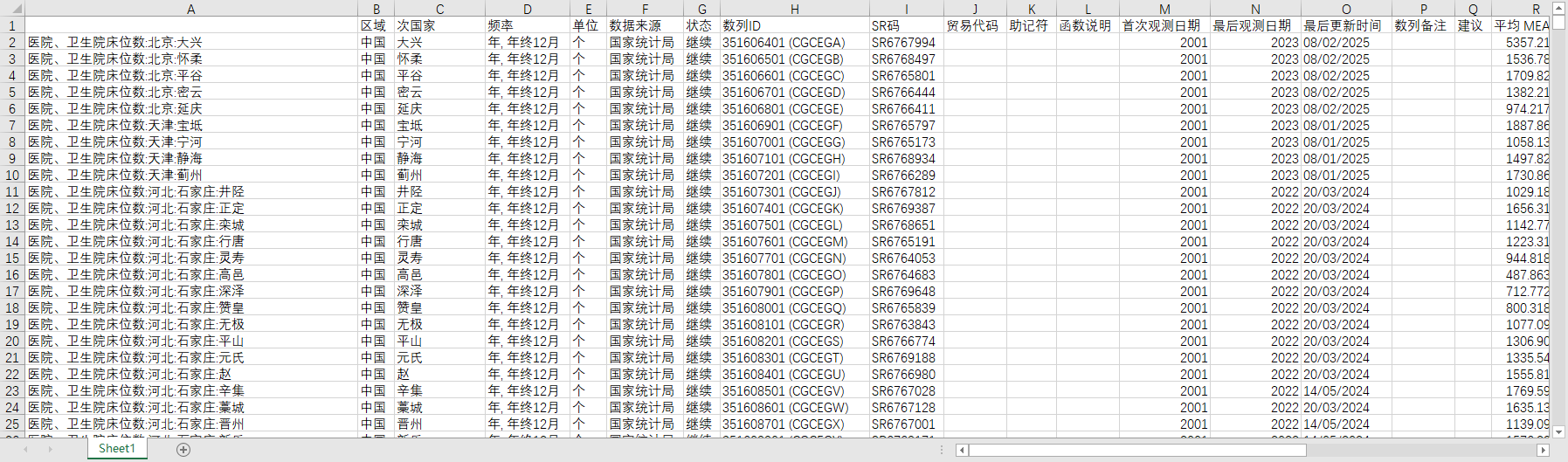 全国2072个区县医院卫生院床位数2001-2022部分2001-2023