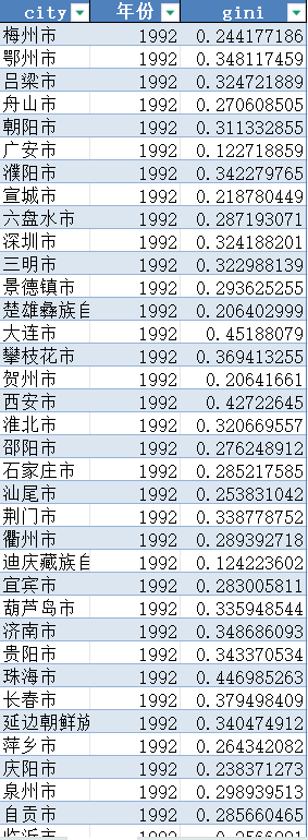 基尼系数是一个国际上广泛用来综合考察居民内部收入分配差异状况的重要指标,在夜间灯光研究中被应用于量化空间发展不均衡性。其核心思想是通过测量实际分布与完全平等分布之间的差距来衡量不平等程度。