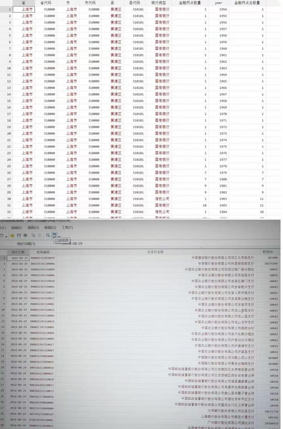 数据包括各个年份的网点数量,适合研究金融发展历史和趋势。