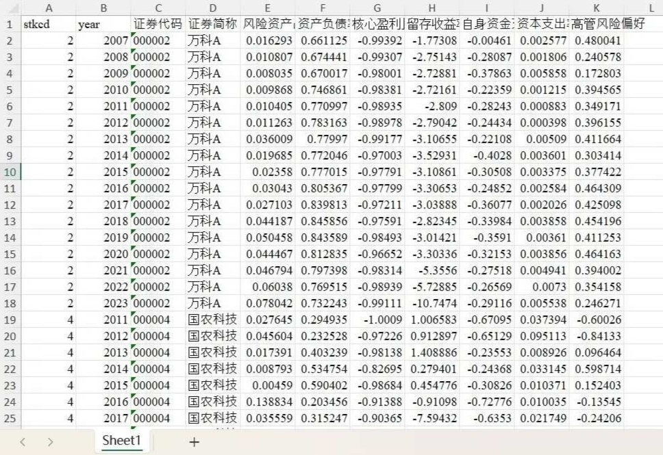 2023-2007年CEO高管风险偏好面板数据