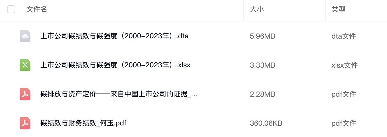 • 数据名称:A股上市公司碳排放、碳绩效、碳强度数据(2000-2023年)
