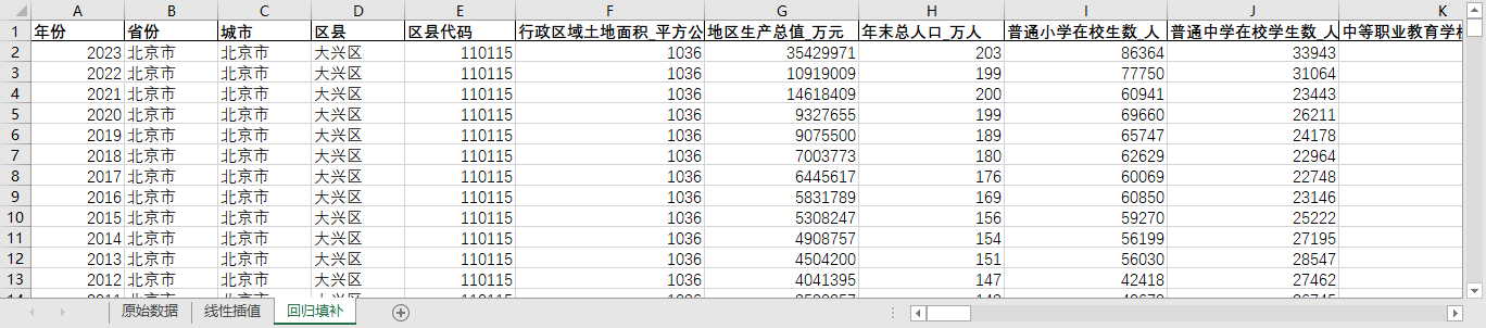 excel数据文件包原始数据(由于多年度指标不同存在缺失值)、线性插值、回归填补三个版本,提供您参考使用。