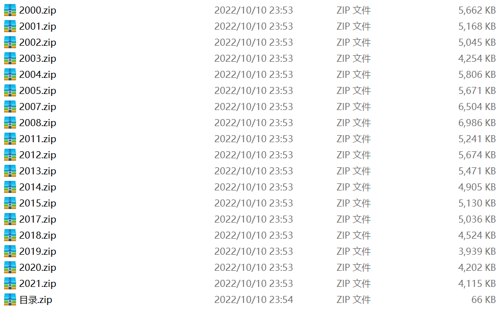 备注:其中包含一个免费目录文件,包含每个年份各个文件的数据简介,有需要可先查看