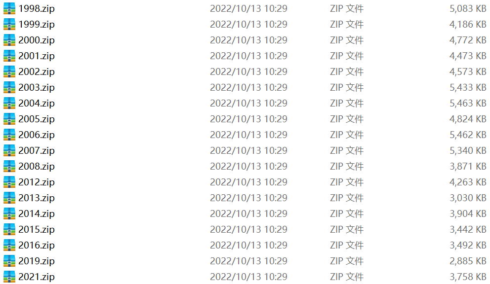 备注:其中包含一个免费目录文件,包含每个年份各个文件的数据简介,有需要可先查看