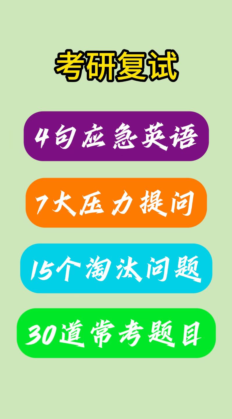 2025 2026 考研复试 英语口语 30道常见问题 4句应急英语 15个淘汰问题 7大压力提问
