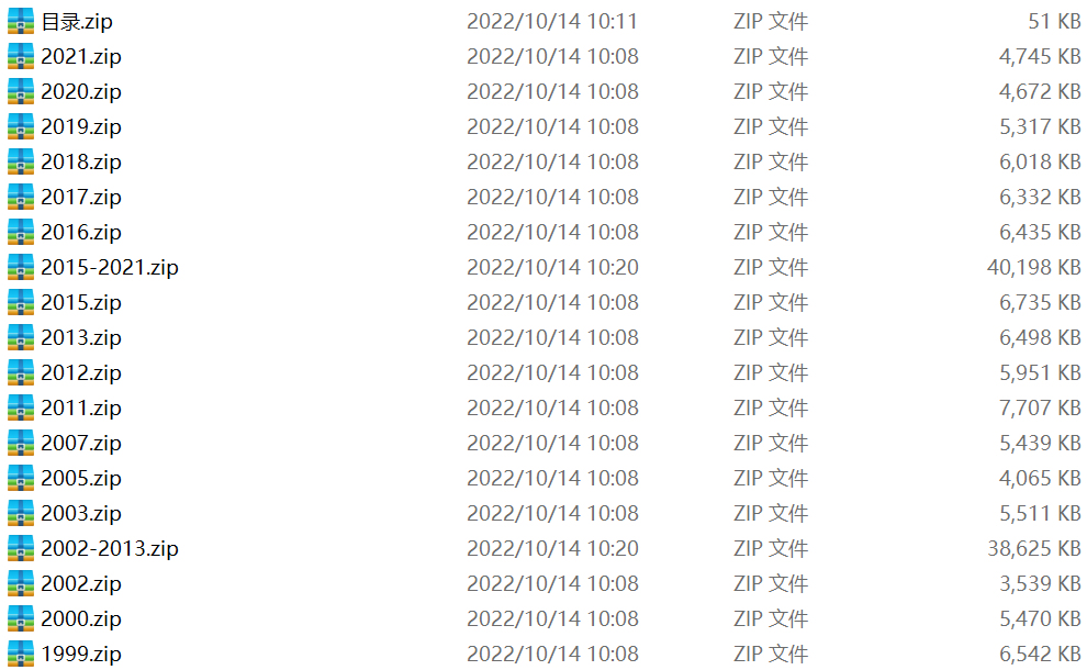备注:其中包含一个免费目录文件,包含每个年份各个文件的数据简介,有需要可先查看