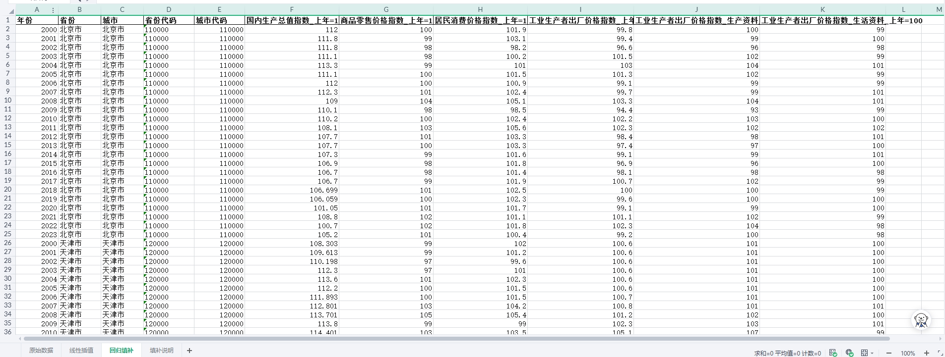 四、数据下载链接(原始数据+线性插值+回归填补+填补说明):