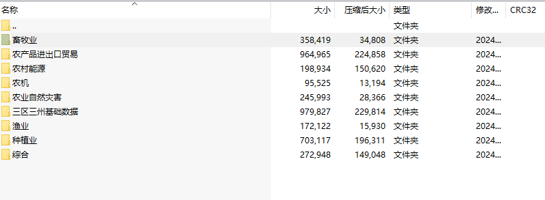 中国农业研究数据库2015-2024畜牧业农产品进出口农村能源农机自然灾害渔业种植业三区三州等数据