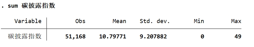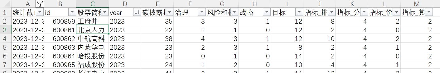 数据来源:上市公司年度报告和正式发布的可持续发展报告(包括环境报告、社会责任报告、ESG报告等)指数构建方法:该指数按照治理、战略、风险和机遇管理、指标和目标“四要素”披露框架,将每个披露要素分成若干子类(Item),根据每个子类企业披露的详尽程度进行打分(Scoring),所有子类得分总和为该企业碳披露指数(Corporatecarbon disclosure index)。企业碳披露指数满分为50分,该数值越高则表明企业的碳信息披露水平(The level of corporate carbon disclosure)越高。原始数据可以在下单后跟我私信,保证来源权威可靠