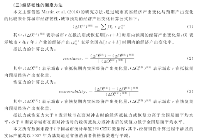 经济韧性指的是一个经济体(包括地级市)在遭受外部冲击(如自然灾害、经济危机等)后,能够迅速恢复并持续稳定增长的能力。它反映了经济体系的稳定性、适应性和创新能力。
