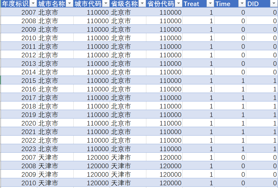 参考范旭等(2024)的做法,使用各地区获批为全面创新改革试验区的政策虚拟变量(Treat×Post)表征。若样本城市为试点城市,则赋值为 1,否则为 0;Post为年份虚拟变量,在数据中为Time,需要注意的是,由于各个地区获得批复的时间不同,因此在各地被批准为全面创新改革试验区的年份及之后取1,否则为0。