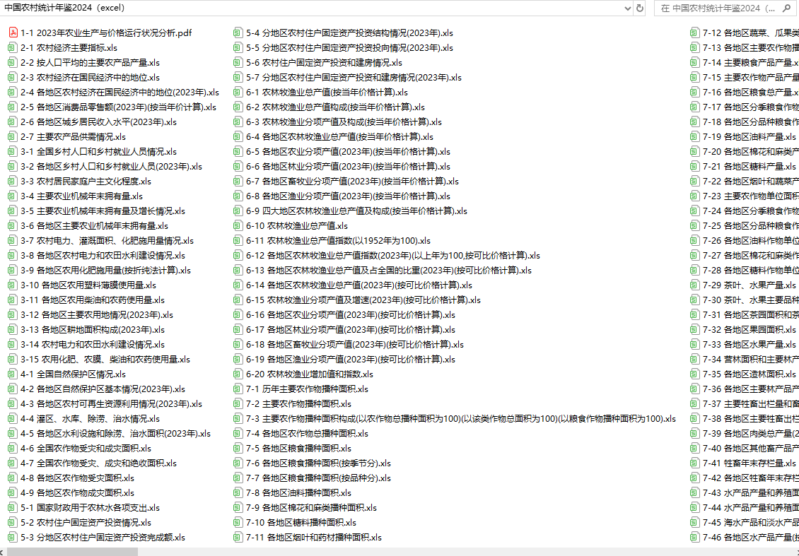 中国农村统计年鉴2020、2021、2022、2023、2024(excel格式)