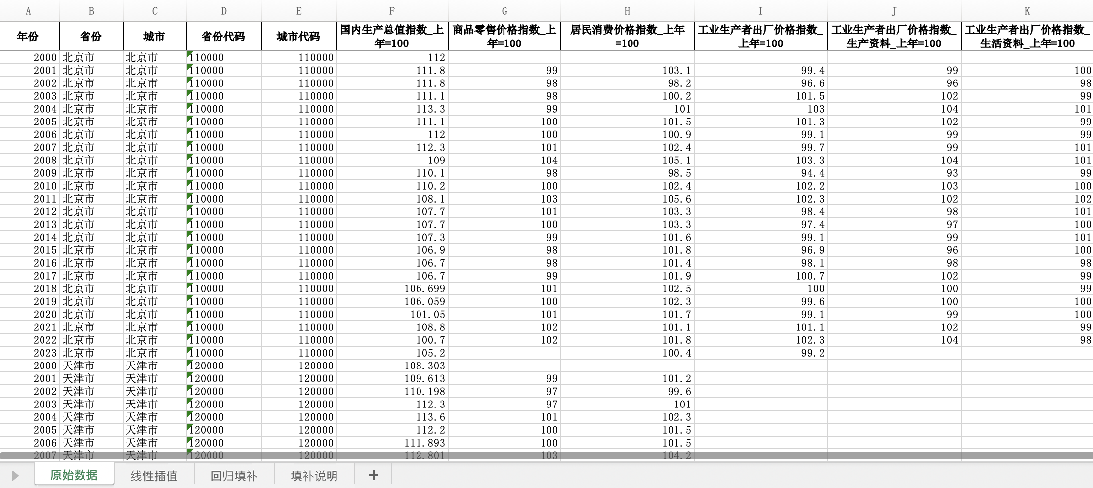 • 数据名称:地级市通货膨胀数据(GDP指数、PPI、CPI 2000-2023年)