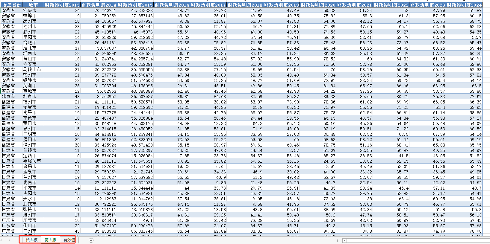 2013-2024年290个地级市城市地方ZF财政透明度面板数据(含原始报告)