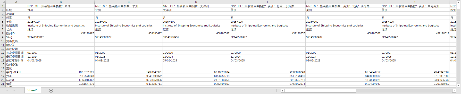 全球世界各地区集装箱运输指数2000-202501月度数据集装箱运量指数中国东南亚欧洲北美洲大洋洲非洲