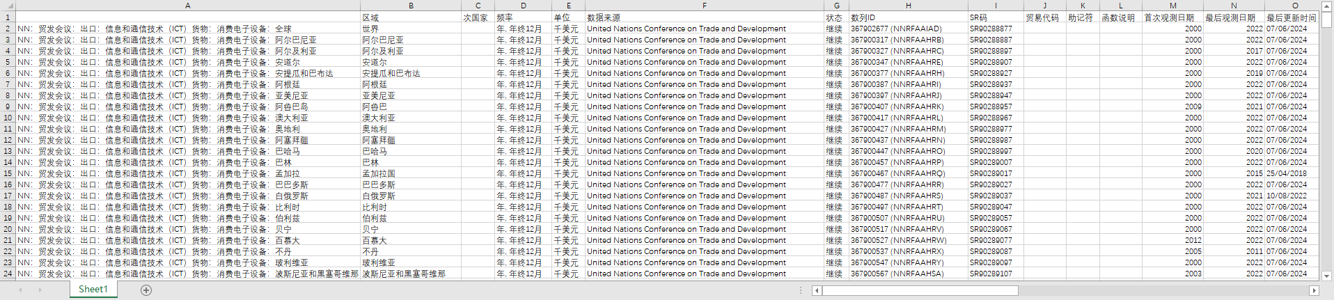 【Intl】 联合国贸易与发展会议(UNCTAD)电子行业产品进出口国际贸易数据