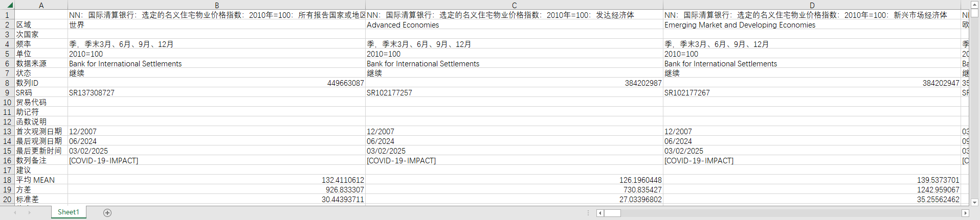 全球世界各国地区房地产房屋名义住宅物业价格指数季度1970-202409国际清算银行数据