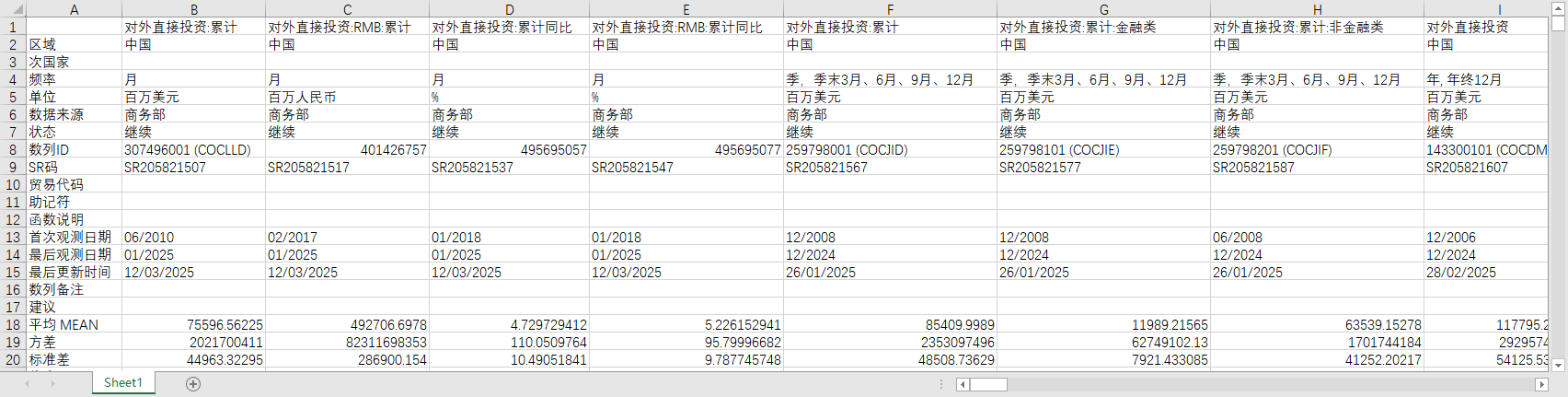 中国全国对外直接投资额2010-202501月度2006-2024年度数据
