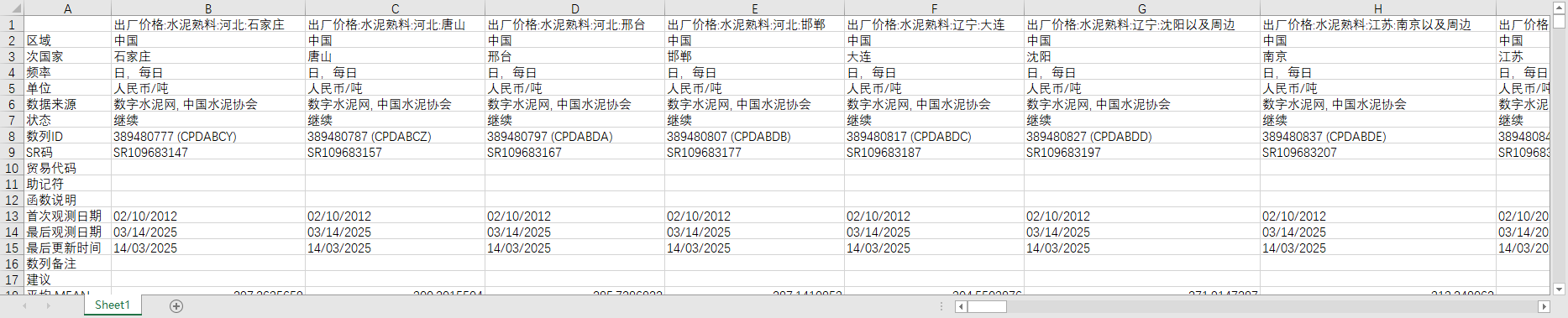 中国全国水泥协会(数字水泥)出厂价格水泥熟料2012-202503日度数据分地级市城市