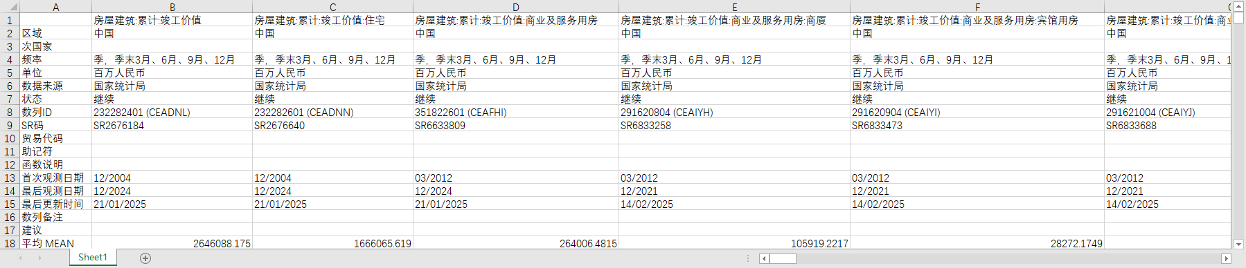 房屋建筑:累计:竣工价值 房屋建筑:累计:竣工价值:住宅 房屋建筑:累计:竣工价值:商业及服务用房 房屋建筑:累计:竣工价值:商业及服务用房:商厦 房屋建筑:累计:竣工价值:商业及服务用房:宾馆用房 房屋建筑:累计:竣工价值:商业及服务用房:餐饮用房 房屋建筑:累计:竣工价值:商业及服务用房:商务会展用房 房屋建筑:累计:竣工价值:商业及服务用房:其他商业及服务用房 房屋建筑:累计:竣工价值:办公用房 房屋建筑:累计:竣工价值:科研、教育和医疗用房 房屋建筑:累计:竣工价值:科研、教育和医疗用房:科学研究用房 房屋建筑:累计:竣工价值:科研、教育和医疗用房:教育用房 房屋建筑:累计:竣工价值:科研、教育和医疗用房:医疗用房 房屋建筑:累计:竣工价值:文化、体育和娱乐用房 房屋建筑:累计:竣工价值:厂房及建筑物 房屋建筑:累计:竣工价值:厂房及建筑物:厂房 房屋建筑:累计:竣工价值:仓库 房屋建筑:累计:竣工价值:其它未列明房屋建筑物 房屋建筑:累计:竣工价值:厂房、仓库 (DC)房屋建筑:累计:竣工价值:批发和零售用房 (DC)房屋建筑:累计:竣工价值:住宿和餐饮用房 (DC)房屋建筑:累计:竣工价值:居民服务业用房 房屋建筑:累计:竣工价值:北京 房屋建筑:累计:竣工价值:天津 房屋建筑:累计:竣工价值:河北 房屋建筑:累计:竣工价值:山西 房屋建筑:累计:竣工价值:内蒙古 房屋建筑:累计:竣工价值:辽宁 房屋建筑:累计:竣工价值:吉林 房屋建筑:累计:竣工价值:黑龙江 房屋建筑:累计:竣工价值:上海 房屋建筑:累计:竣工价值:江苏 房屋建筑:累计:竣工价值:浙江 房屋建筑:累计:竣工价值:安徽 房屋建筑:累计:竣工价值:福建 房屋建筑:累计:竣工价值:江西 房屋建筑:累计:竣工价值:山东 房屋建筑:累计:竣工价值:河南 房屋建筑:累计:竣工价值:湖北 房屋建筑:累计:竣工价值:湖南 房屋建筑:累计:竣工价值:广东 房屋建筑:累计:竣工价值:广西 房屋建筑:累计:竣工价值:海南 房屋建筑:累计:竣工价值:重庆 房屋建筑:累计:竣工价值:四川 房屋建筑:累计:竣工价值:贵州 房屋建筑:累计:竣工价值:云南 房屋建筑:累计:竣工价值:西藏 房屋建筑:累计:竣工价值:陕西 房屋建筑:累计:竣工价值:甘肃 房屋建筑:累计:竣工价值:青海 房屋建筑:累计:竣工价值:宁夏 房屋建筑:累计:竣工价值:新疆 房屋建筑:累计:国有及国有控股:竣工价值 房屋建筑:累计:国有及国有控股:竣工价值:住宅 房屋建筑:累计:国有及国有控股:竣工价值:商业及服务用房 房屋建筑:累计:国有及国有控股:竣工价值:办公用房 房屋建筑:累计:国有及国有控股:竣工价值:科研、教育和医疗用房 房屋建筑:累计:国有及国有控股:竣工价值:文化、体育和娱乐用房 房屋建筑:累计:国有及国有控股:竣工价值:厂房及建筑物 房屋建筑:累计:国有及国有控股:竣工价值:仓库 房屋建筑:累计:国有及国有控股:竣工价值:其它未列明房屋建筑物 房屋建筑:累计:国有及国有控股:竣工价值:北京 房屋建筑:累计:国有及国有控股:竣工价值:天津 房屋建筑:累计:国有及国有控股:竣工价值:河北 房屋建筑:累计:国有及国有控股:竣工价值:山西 房屋建筑:累计:国有及国有控股:竣工价值:内蒙古 房屋建筑:累计:国有及国有控股:竣工价值:辽宁 房屋建筑:累计:国有及国有控股:竣工价值:吉林 房屋建筑:累计:国有及国有控股:竣工价值:黑龙江 房屋建筑:累计:国有及国有控股:竣工价值:上海 房屋建筑:累计:国有及国有控股:竣工价值:江苏 房屋建筑:累计:国有及国有控股:竣工价值:浙江 房屋建筑:累计:国有及国有控股:竣工价值:安徽 房屋建筑:累计:国有及国有控股:竣工价值:福建 房屋建筑:累计:国有及国有控股:竣工价值:江西 房屋建筑:累计:国有及国有控股:竣工价值:山东 房屋建筑:累计:国有及国有控股:竣工价值:河南 房屋建筑:累计:国有及国有控股:竣工价值:湖北 房屋建筑:累计:国有及国有控股:竣工价值:湖南 房屋建筑:累计:国有及国有控股:竣工价值:广东 房屋建筑:累计:国有及国有控股:竣工价值:广西 房屋建筑:累计:国有及国有控股:竣工价值:海南 房屋建筑:累计:国有及国有控股:竣工价值:重庆 房屋建筑:累计:国有及国有控股:竣工价值:四川 房屋建筑:累计:国有及国有控股:竣工价值:贵州 房屋建筑:累计:国有及国有控股:竣工价值:云南 房屋建筑:累计:国有及国有控股:竣工价值:西藏 房屋建筑:累计:国有及国有控股:竣工价值:陕西 房屋建筑:累计:国有及国有控股:竣工价值:甘肃 房屋建筑:累计:国有及国有控股:竣工价值:青海 房屋建筑:累计:国有及国有控股:竣工价值:宁夏 房屋建筑:累计:国有及国有控股:竣工价值:新疆 房屋建筑:竣工价值 房屋建筑:竣工价值:住宅 房屋建筑:竣工价值:商业及服务用房 房屋建筑:竣工价值:商业及服务用房:商厦 房屋建筑:竣工价值:商业及服务用房:宾馆用房 房屋建筑:竣工价值:商业及服务用房:餐饮用房 房屋建筑:竣工价值:商业及服务用房:商务会展用房 房屋建筑:竣工价值:商业及服务用房:其它商业及服务用房 房屋建筑:竣工价值:办公用房 房屋建筑:竣工价值:科研、教育和医疗用房 房屋建筑:竣工价值:科研、教育和医疗用房:科学研究用房 房屋建筑:竣工价值:科研、教育和医疗用房:教育用房 房屋建筑:竣工价值:科研、教育和医疗用房:医疗用房 房屋建筑:竣工价值:文化、体育和娱乐用房 房屋建筑:竣工价值:厂房及建