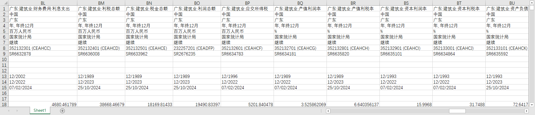 企业数 从业人数 从业人数:平均 签定合同额:累计 签定合同额:累计:本年新签合同 签定合同额:累计:上年结转 资产合计 流动资产 应收工程款 应收工程款:竣工工程 库存 负债合计 总收入:累计 工程结算收入:累计 工程结算成本:累计 工程结算税金及附加:累计 工程结算利润:累计 其他业务收入:累计 其他业务利润:累计 管理费用:累计 管理费用:累计:税金 财务费用:累计 税金总额:累计 利润总额:累计 产值利润率:累计 企业数 亏损企业数 从业人数 从业人数:年平均 签定合同额 签定合同额:本年新签合同 签定合同额:上年结转 资产合计 流动资产 应收工程款 应收工程款:竣工工程 库存 长期投资 固定资产 固定资产原价 固定资产原价:生产经营用 固定资产折旧 固定资产折旧:本年折旧 在建工程 无形及递延资产 无形及递延资产:无形资产 负债合计 流动负债 长期负债 所有者权益 所有者权益:实收资本 总收入 工程结算收入 工程结算成本 工程经营费用 工程结算税金及附加 工程结算利润 其他业务收入 其他业务利润 管理费用 管理费用:税金 财务费用 财务费用:利息支出 利税总额 税金总额 利润总额 应交所得税 产值利润率 产值利税率 资本利润率 资本利税率 资产负债率